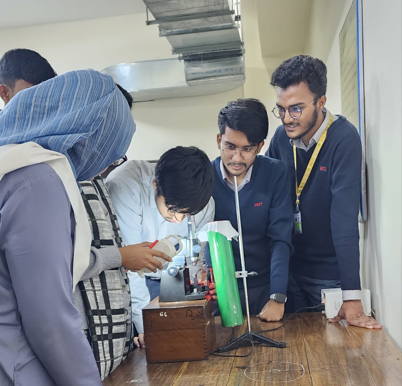 The Physics Laboratory for Undergraduate Engineering Students at MIST is a thoughtfully designed and fully equipped facility spanning 3,140 ft², accommodating up to 60 students per session. A dedicated team including a lab assistant, lab attendant, Assistant Technical Officer (ATO), and Technical Officer (TO) ensures the smooth, safe, and efficient functioning of all laboratory activities.