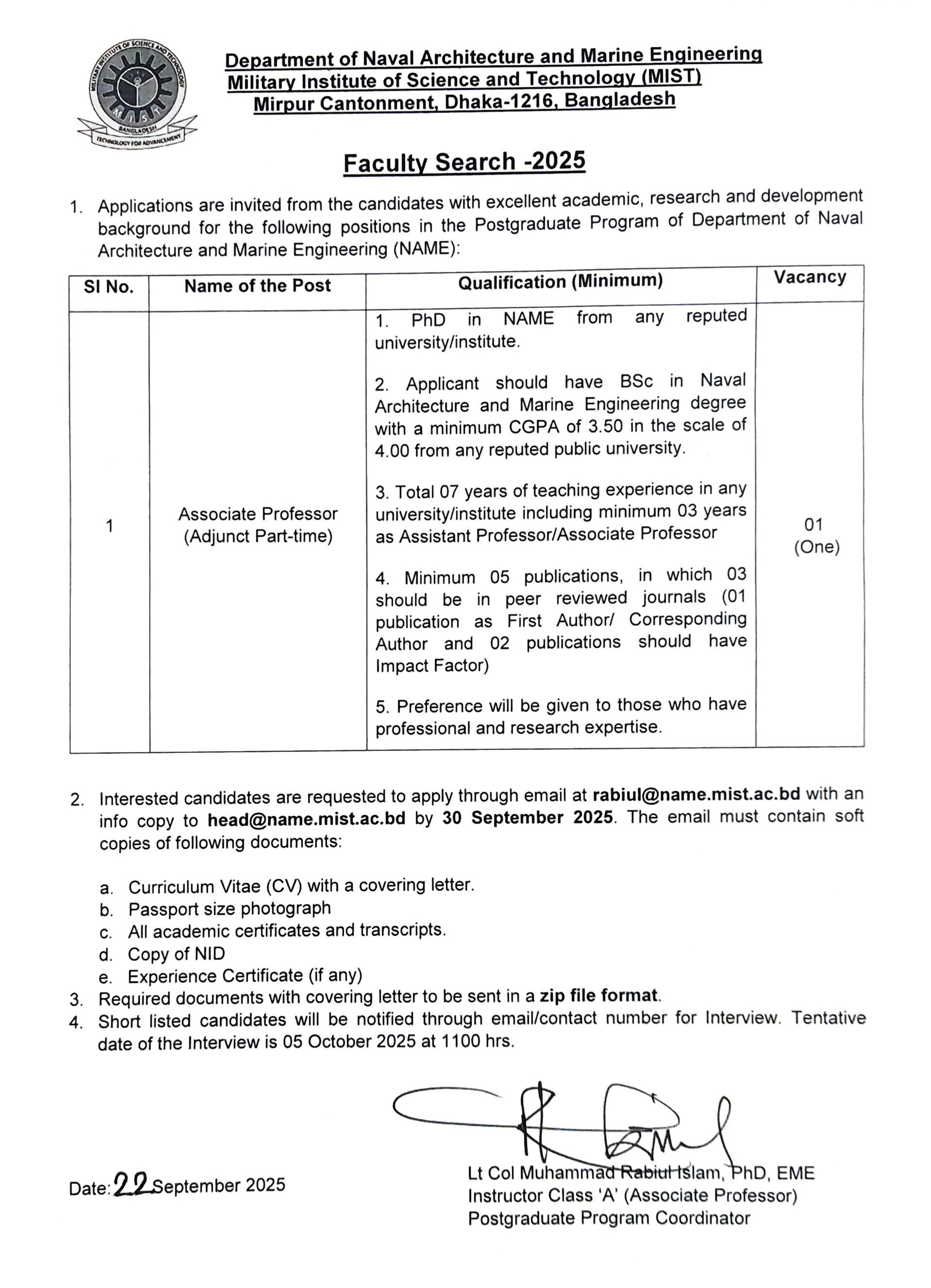 Faculty Recruitment Circular (NAME DEPT), 2025